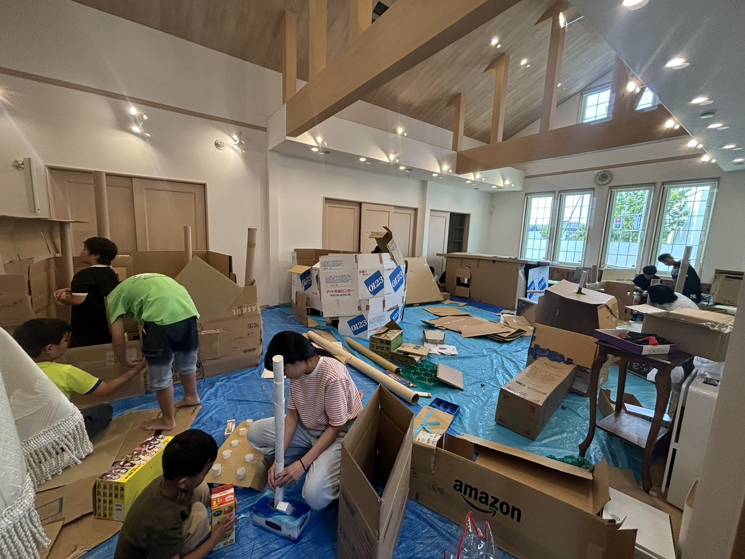 ダンボールハウス作り、広い部屋で思いっきりプラレールを広げて作る、親子でドミノに挑戦、卓球台を出したり、風船バレーボール大会、、など。集まったメンバーで楽しく遊びます。毎回、小学生の子どもが楽しめる企画を用意してお待ちしています。